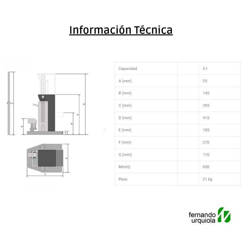 Gato Hidráulico tipo garra 5 Ton